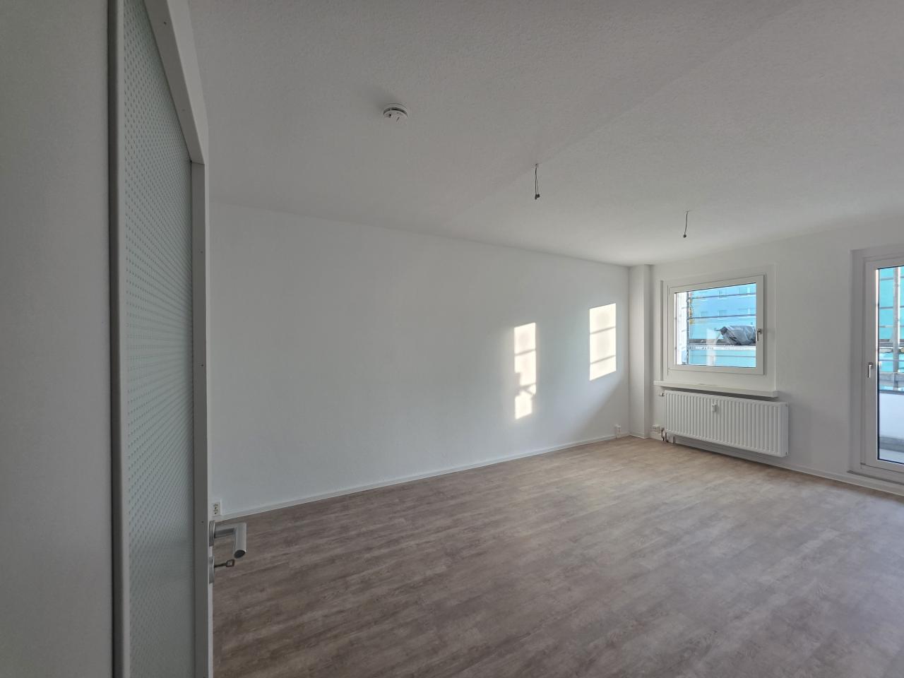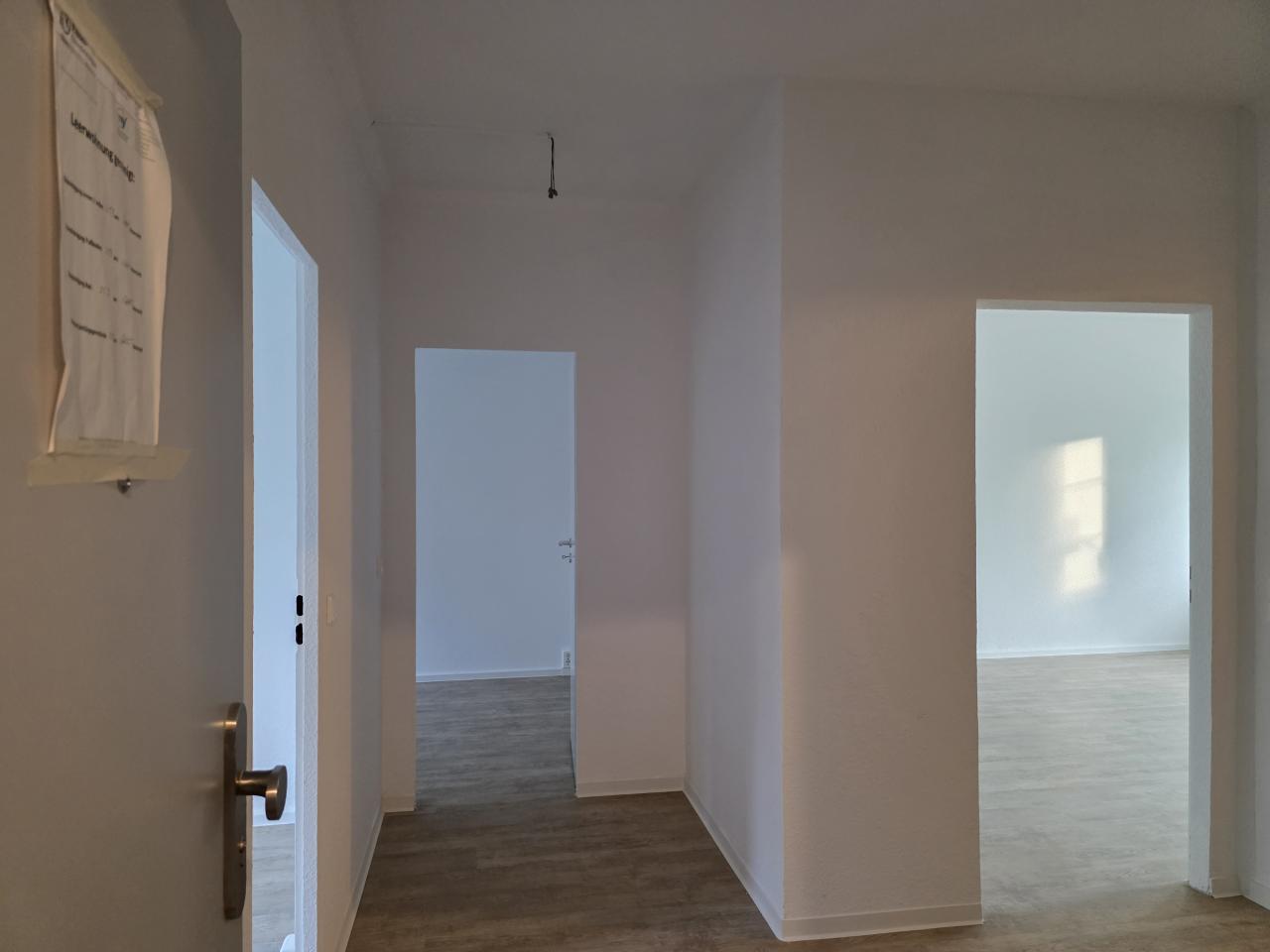 Der angegebene Grundriss dient als Beispiel. Die Wohnung wurde 2025 renoviert und verfügt über 3 Zimmer mit Balkon. In der Wohnung ist ein Vinylboden verlegt. Das Bad mit Dusche ist gefliest.