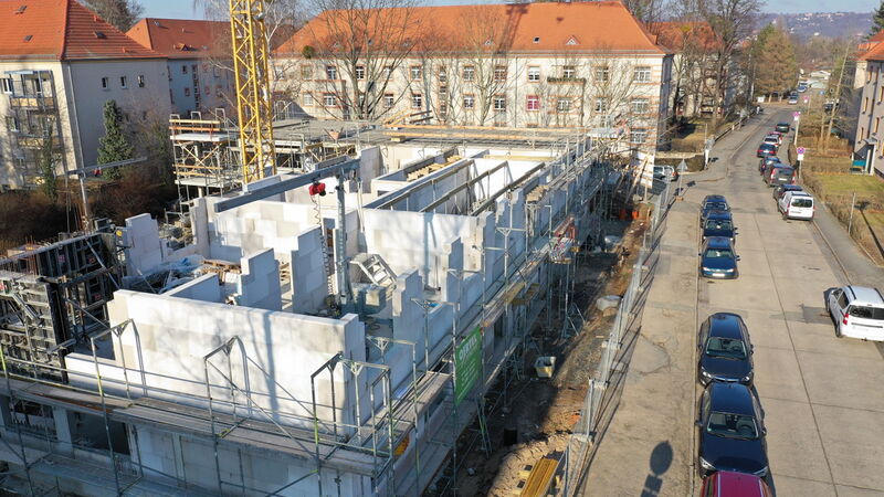 Es wird 2 Hauseingänge (Ulmenstraße 16 und Kleinzschachwitzer Straße 28) mit insgesamt 22 Wohnungen geben. Auf dem Grundstück werden 13 Stellplätze gebaut, die Zufahrt erfolgt über die Ulmenstraße.
